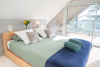 ○ Une chambre double (lit 160cm) avec rangements, espace de travail (bureau, chaise, écran USB-C) et salle de bain privative avec meuble vasque et douche italienne. La baie vitrée est équipée d'un store occultant.