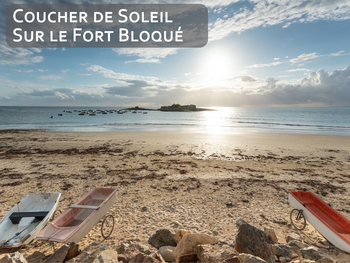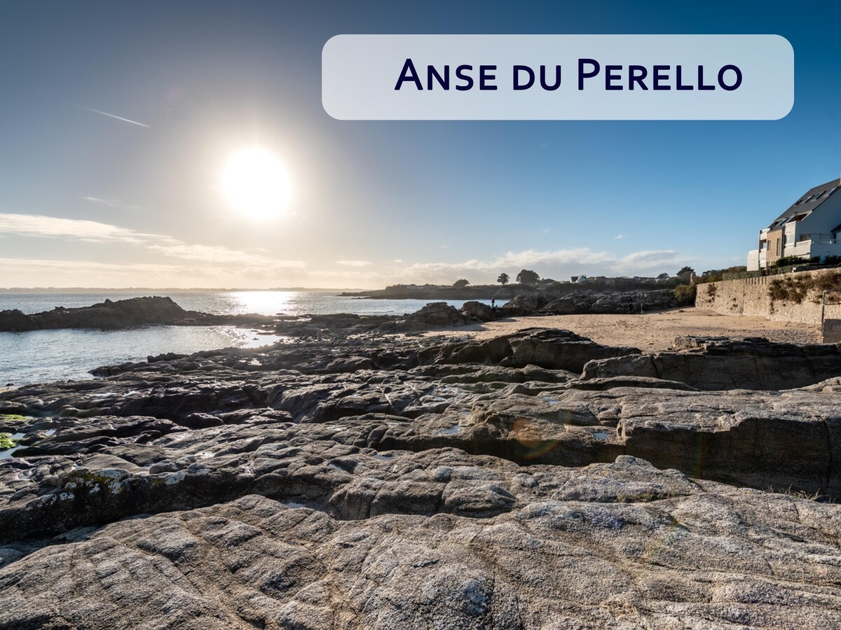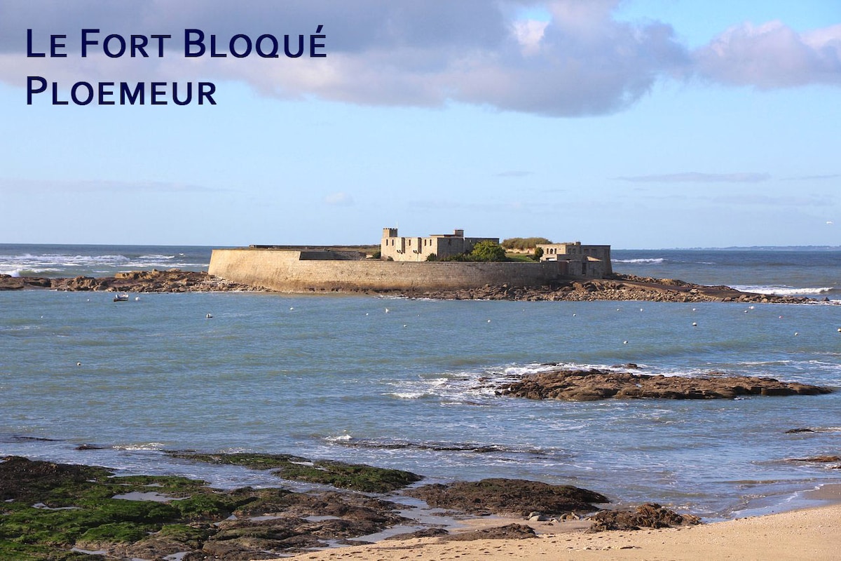 La grande plage publique située à 3 min à pied vous permettra de profiter de l'Océan et des couchers de soleil à couper le souffle sur le fort Bloqué et l'île de Groix.