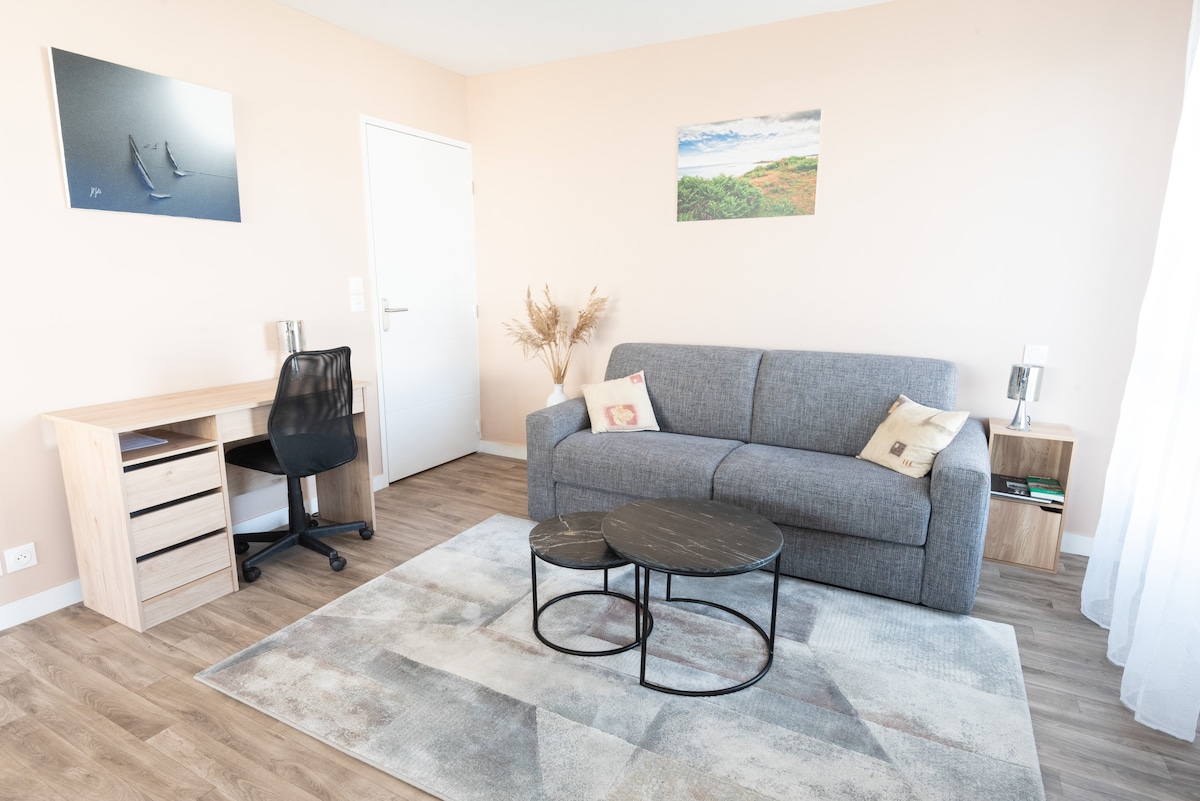 PLOEMEUR - Apartment - Beautiful, pleasant new one-bedroom apartment in the heart of town ![]() | 2 person(s) | ![]() | 1 bathroom(s) |