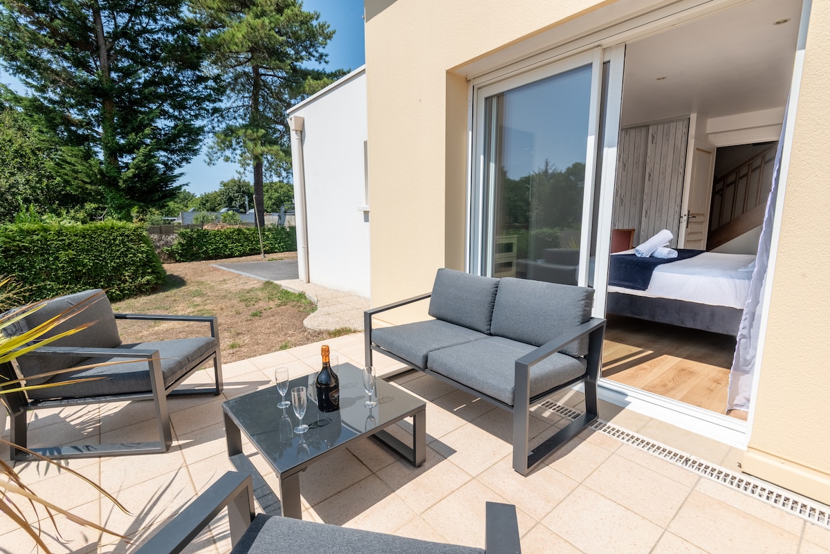 ☼ Le salon donne directement sur la terrasse et le jardin par de grandes baies vitrées