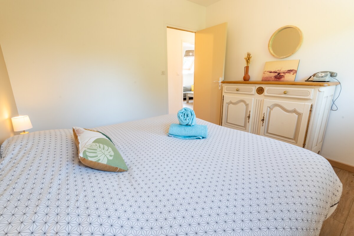 ► Une chambre double (lit 140cm), tables, lampes de chevets et rangements. Volets roulants.