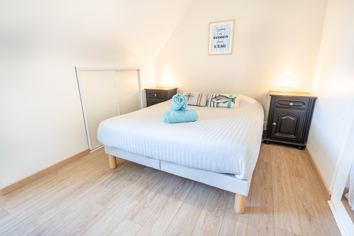 ► Une chambre double (lit 160cm), tables, lampes de chevets et rangements. Volets roulants.