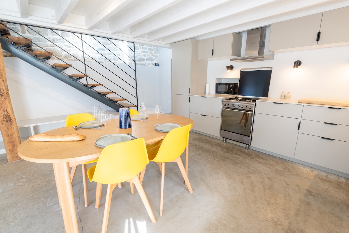 • Un espace repas avec une table en bois et chaises pour 4 personnes