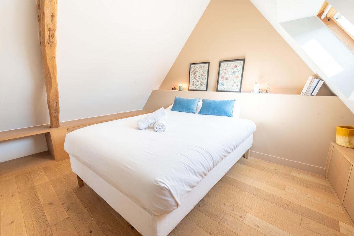 ⚠️ Cette chambre, seulement accessible par un couloir au premier étage, ne possède pas de porte, mais un rideau occultant.